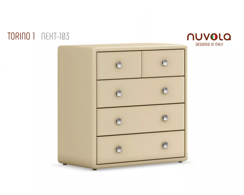 Мягкий, удобный и вместительный комод Торино от Nuvola - многофункциональное и практичное место для хранения одежды. Отлично впишется в любой интерьер спальни, прихожей или гостиной.