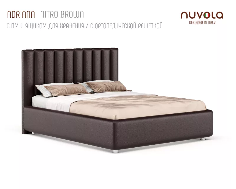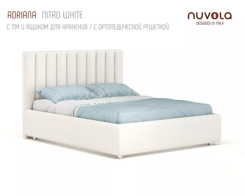 С кроватью Adriana от Nuvola ваша спальная комната наполнится спокойстивем, мягким теплом и уютом — идеальное место для отдыха! Если Вы находитесь в поиске кровати с более низким изголовьем с вертикальными линиями в дизайне, рассмотрите аналог Адрианы - кровать Fiore (Фиоре).
