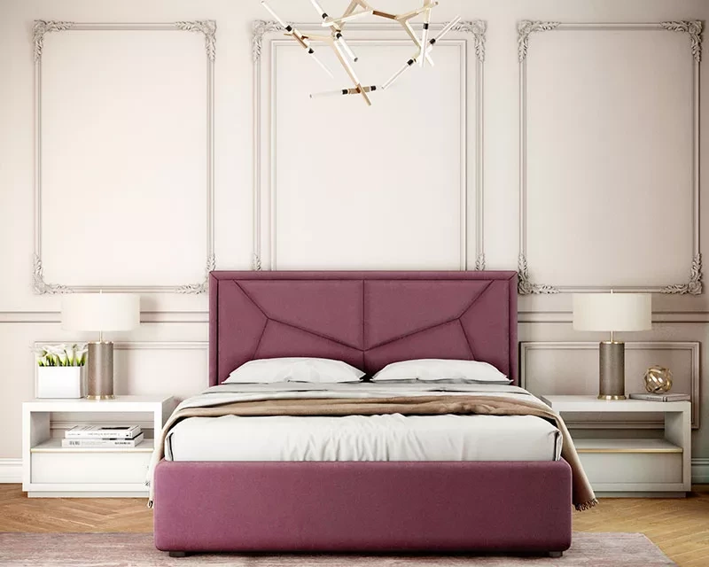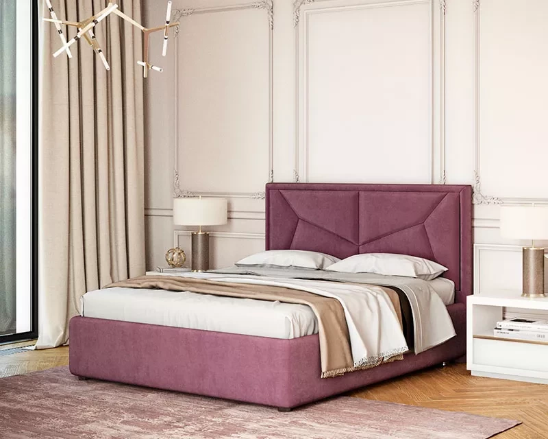 Кровать Алатри - ломаные линии высокого изголовья, стильный геометрический дизайн. Комплектация на выбор: с ортопедическим основанием на ножках или подъемным механизмом и ящиком для белья.