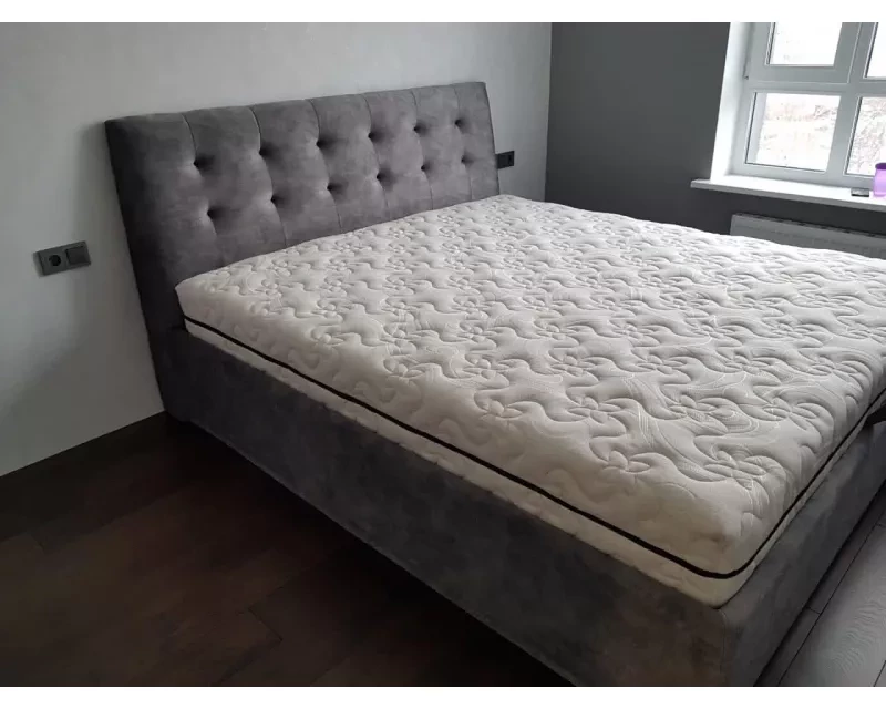 Кровать с декоративной строчкой на мягком, пышном эргономичном изголовье (изголовье утолщается ближе к нижней части - удобно читать, смотреть телевизор, проверять соц.сети) увеличенной высоты.