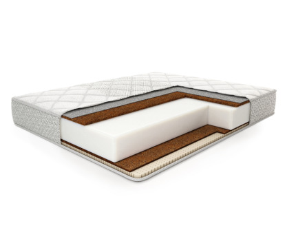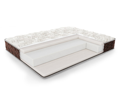 Чехол: несъёмный, из плотной трикотажной ткани с содержанием льна, простёган на искусственном волокне Холлкон (200 гр) и 0,8 см пены - пышность и объём. Бурлет матраса выполнен из плотного мебельного жаккарда шоколадного цвета, простёганного на ППУ 1 см — усиление периметра, сохранение геометрии матраса на протяжении всего срока службы.