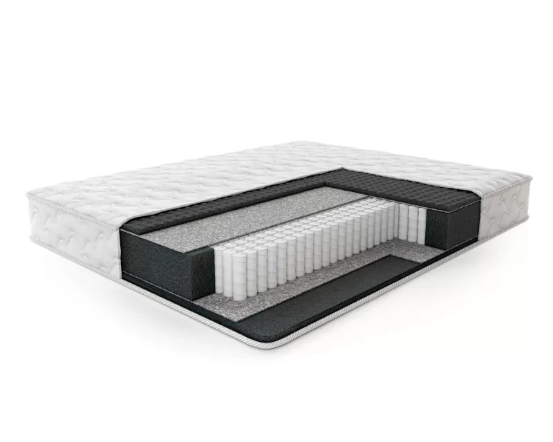 Матрас средней жесткости на блоке независимых пружин с массажной пеной (ППУ, искусственный латекс) и термовойлоком.
