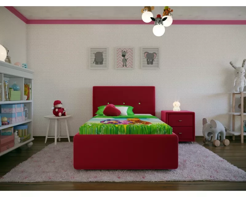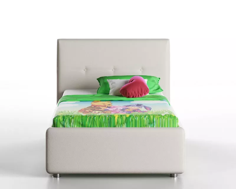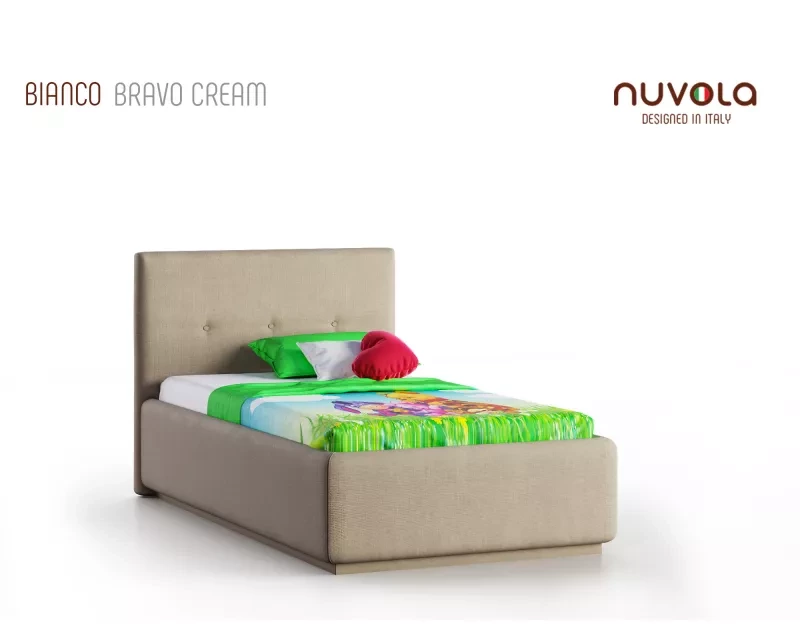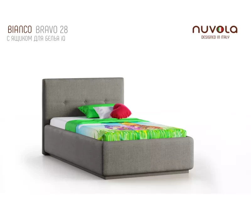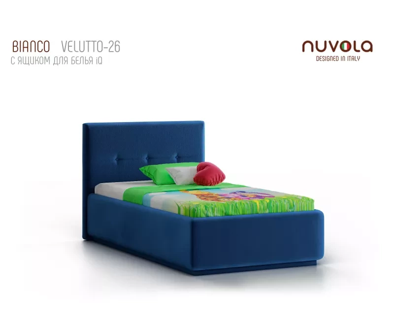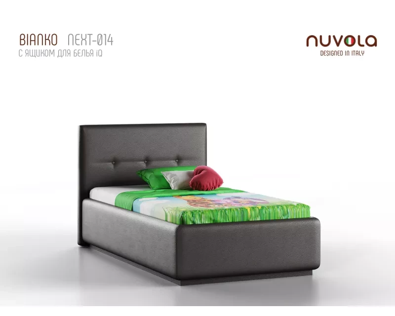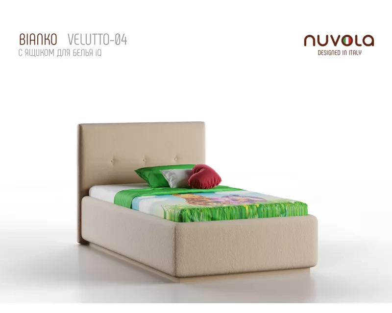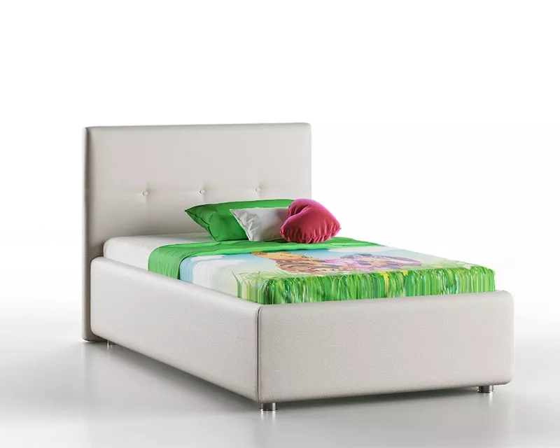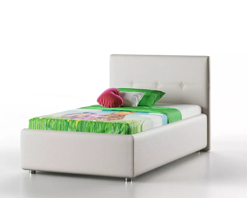 Недорогая и компактная, абсолютно безопасная, мягкая детская кровать Bianco, с изголовьем, украшенным пуговицами.