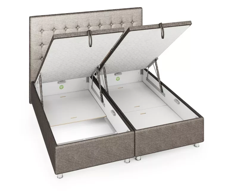 Основание BOX c механизмом подъема и местом для хранения оборудовано сдвижным полом (толщина 10 мм., прочно и надежно опирается на металлическую раму каркаса) лучше всего подходит для премиальных матрасов и не имеет ограничений по нагрузке (до 300кг на 1 ящик)!