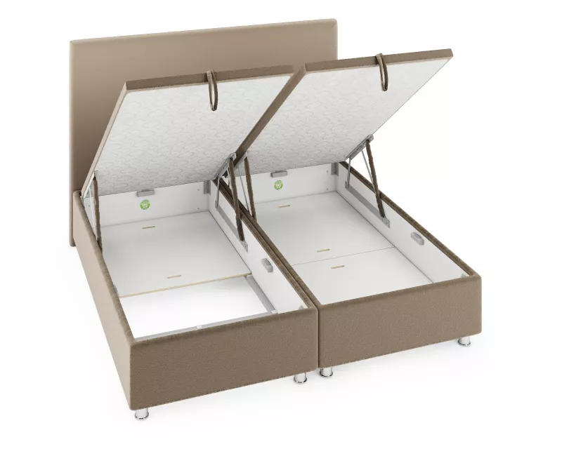 Основание BOX с местом для хранения оборудовано сдвижным полом (толщина 10 мм., прочно и надежно опирается на металлическую раму каркаса) лучше всего подходит для премиальных матрасов и не умеет ограничений по нагрузке (до 300кг на 1 ящик)!