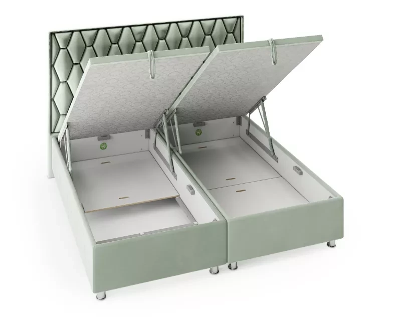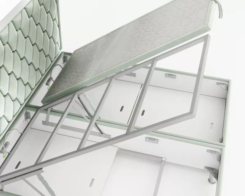 Основание BOX c механизмом подъема и местом для хранения оборудовано сдвижным полом (толщина 10 мм., прочно и надежно опирается на металлическую раму каркаса) лучше всего подходит для премиальных матрасов и не имеет ограничений по нагрузке (до 300 кг на 1 ящик)!