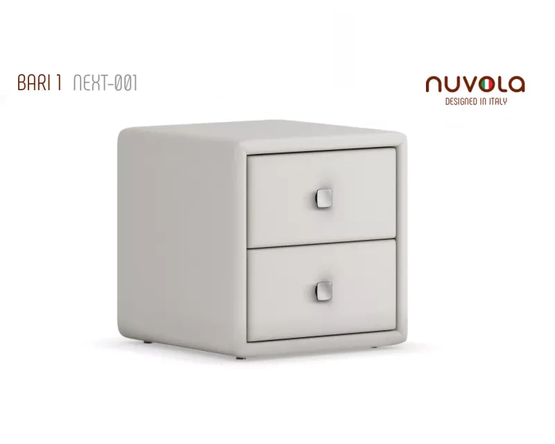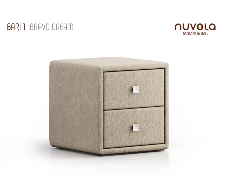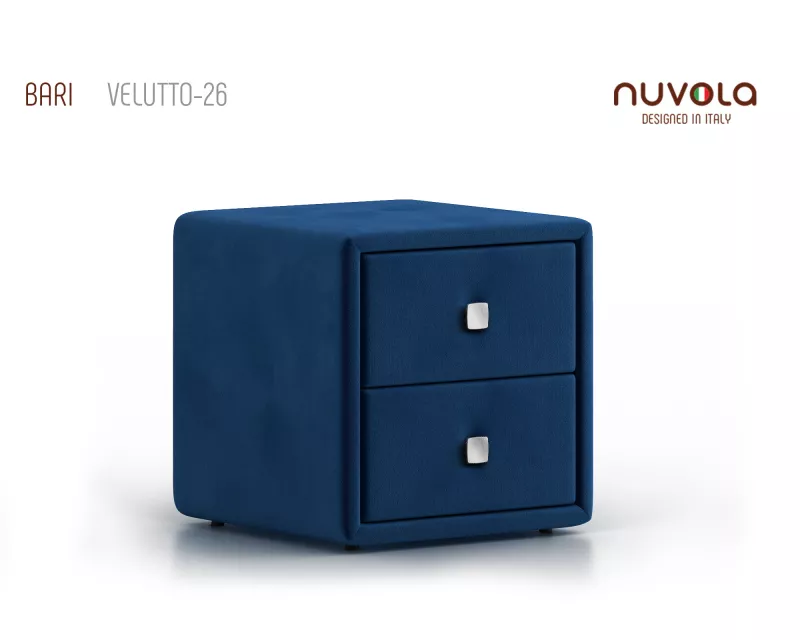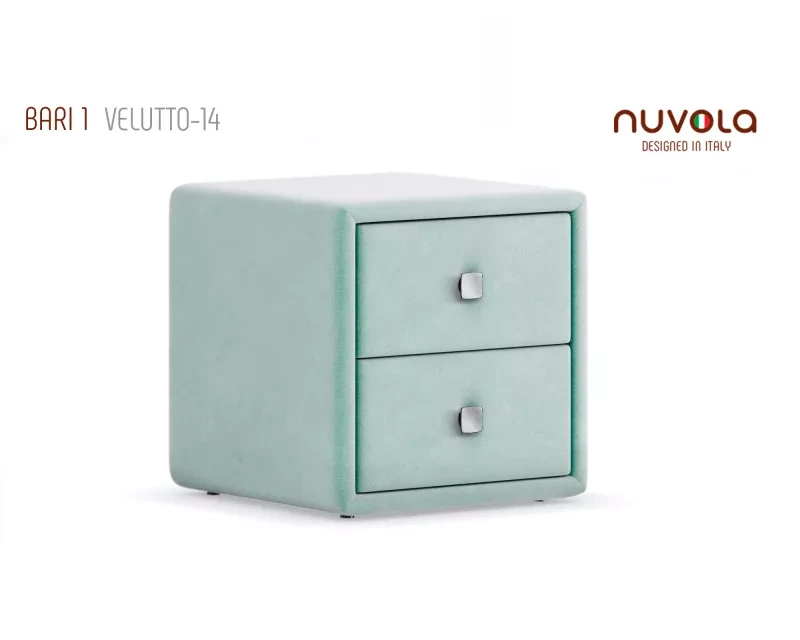 Мягкая прикроватная тумба Bari не только элемент декора, но и достаточно функциональный предмет мебели Вашей спальни: на ней, и в ней, мы будем хранить то, что пригодится нам перед сном и сразу после пробуждения - косметика, наручные часы, очки, телефон, наушники, книга и много другое. Нижний ящик тумбы более глубокий.