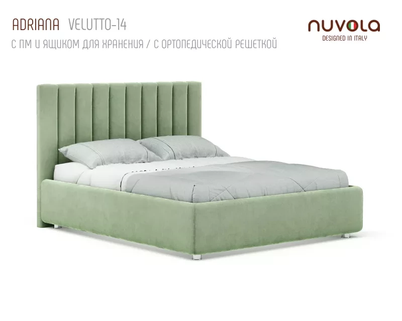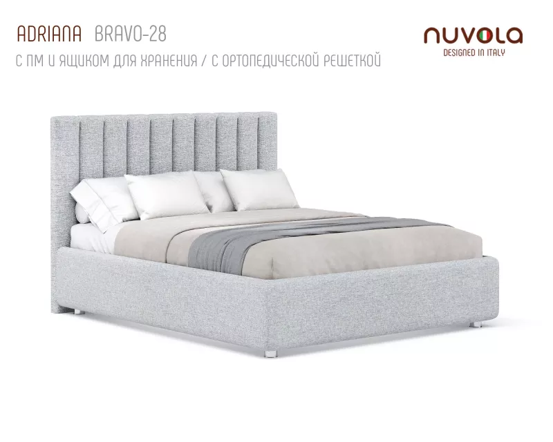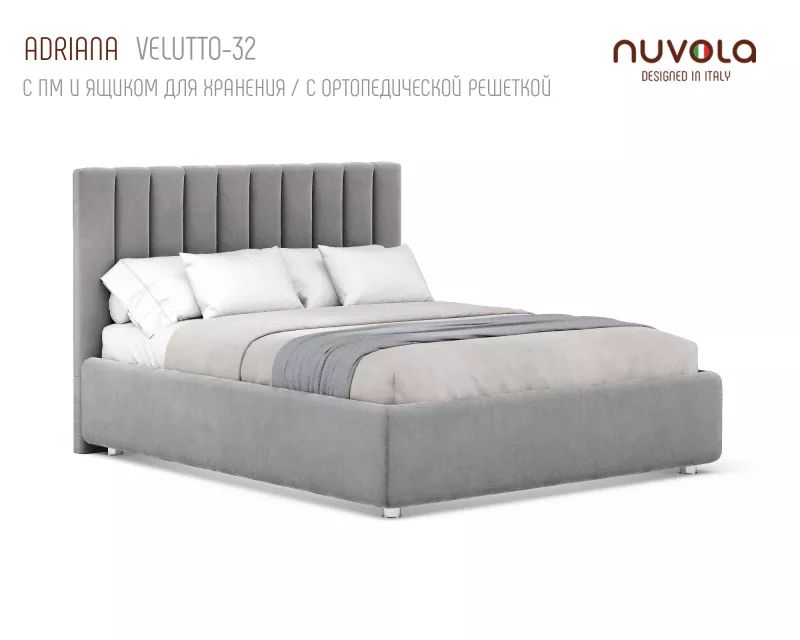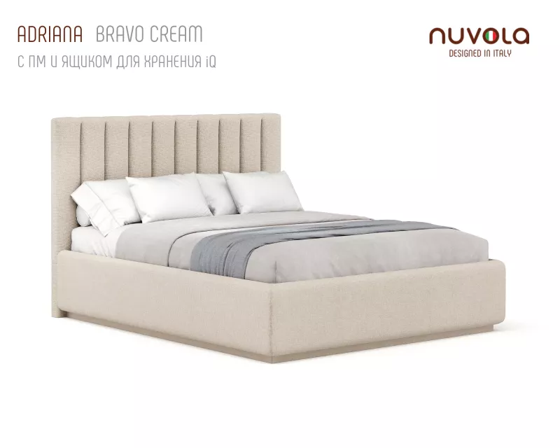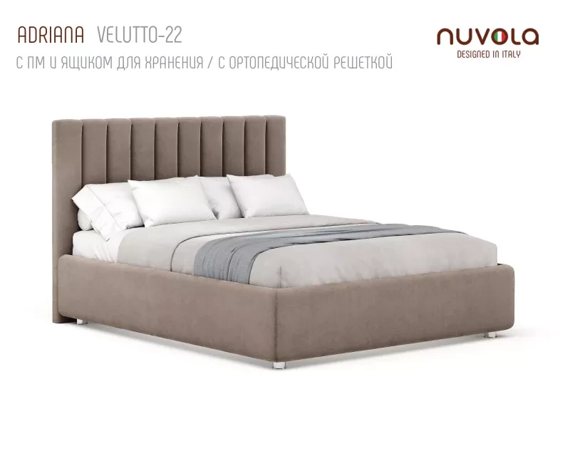 С кроватью Adriana от Nuvola ваша спальная комната наполнится спокойстивем, мягким теплом и уютом — идеальное место для отдыха! Если Вы находитесь в поиске кровати с более низким изголовьем с вертикальными линиями в дизайне, рассмотрите аналог Адрианы - кровать Fiore (Фиоре).