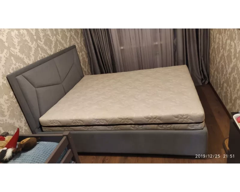 Кровать Алатри - ломаные линии высокого изголовья, стильный геометрический дизайн. Комплектация на выбор: с ортопедическим основанием на ножках или подъемным механизмом и ящиком для белья.