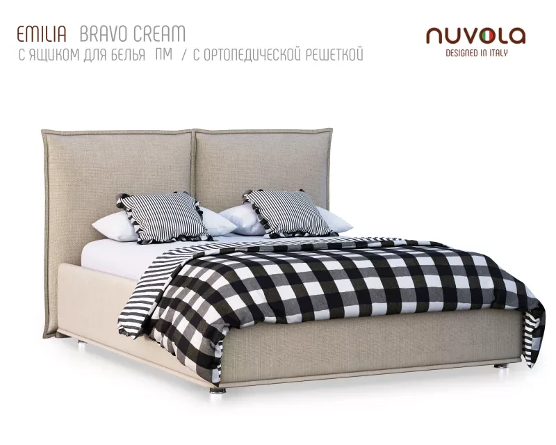 Особый комфорт и расслабление после трудового дня подарит Вам кровать Emilia от Nuvola! Ложитесь поудобней, вытягивайте ножки, прислонившись к мягкой спинке-подушке — невероятно уютно, правда? Лёгкий и лаконичный дизайн, стильный кант по периметру изголовья и нижней части чехла на царгах (боковинах) — красота, надёжность и удобство!