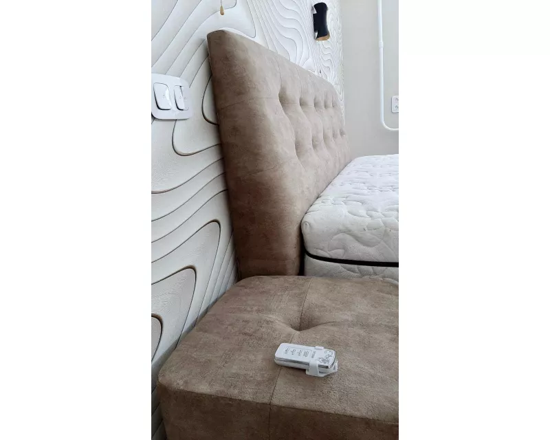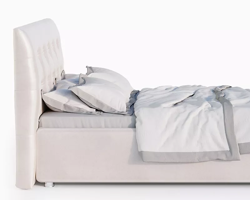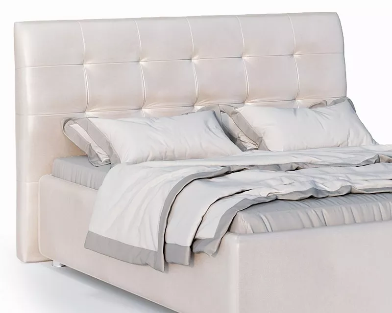 Кровать с декоративной строчкой на мягком, пышном эргономичном изголовье (изголовье утолщается ближе к нижней части - удобно читать, смотреть телевизор, проверять соц.сети) увеличенной высоты.