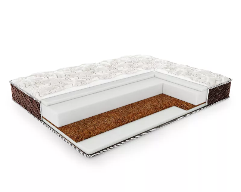 Матрас с разными по жёсткости сторонами, мебельной пеной в качестве слоя комфорта и латексированным кокосом.