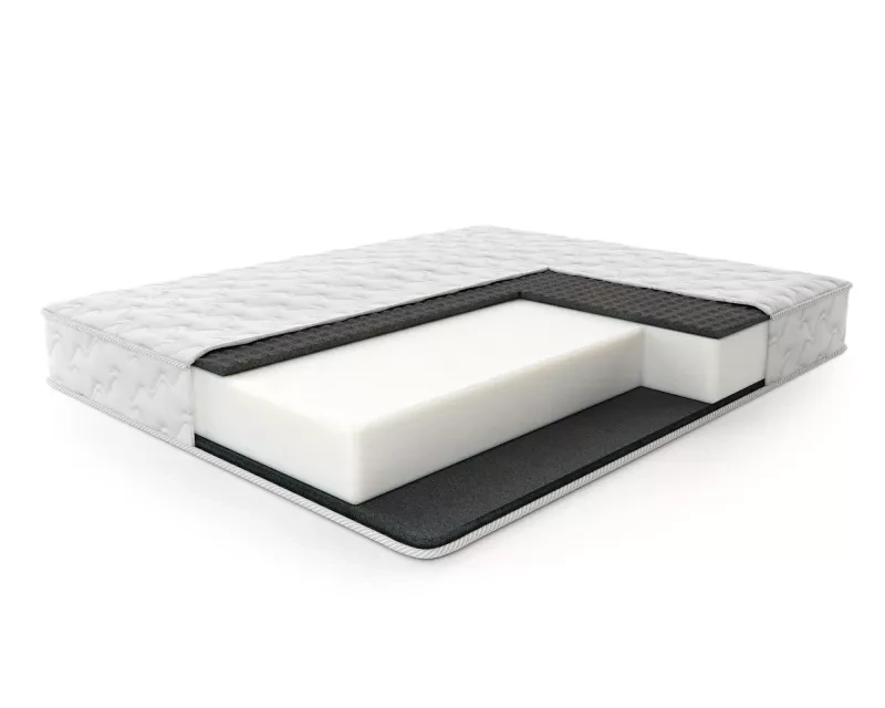 Матрас средней жесткости на блоке мебельного ППУ в основе и массажной пеной с обеих сторон.
