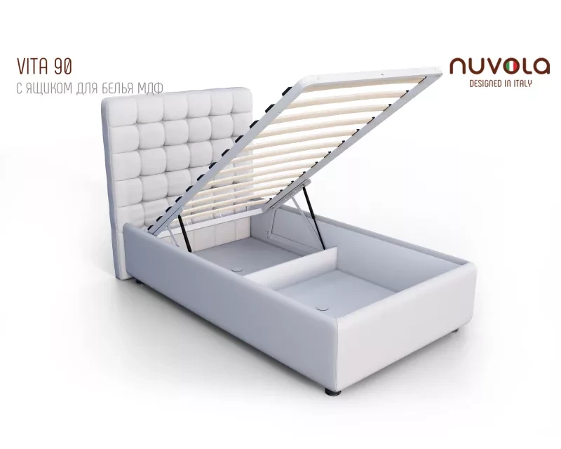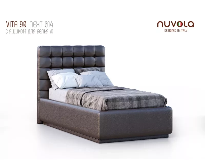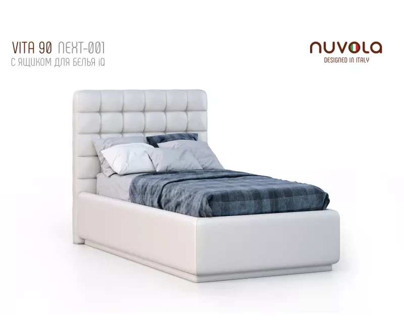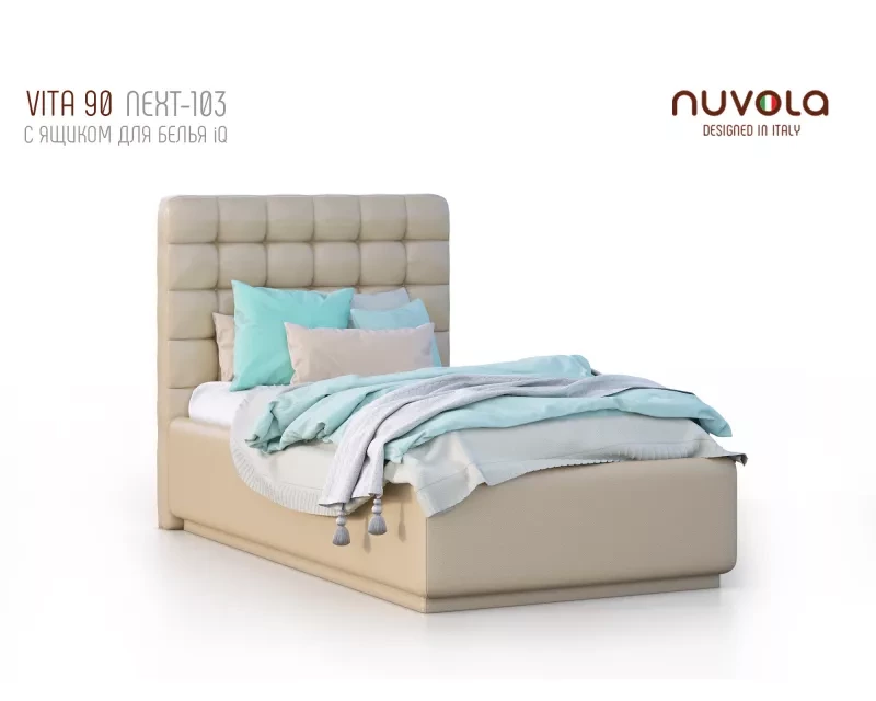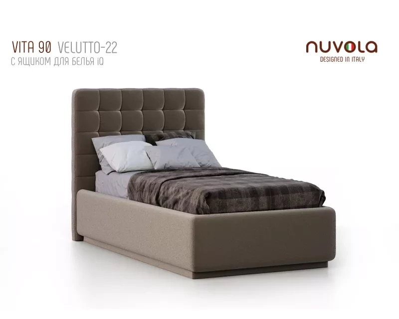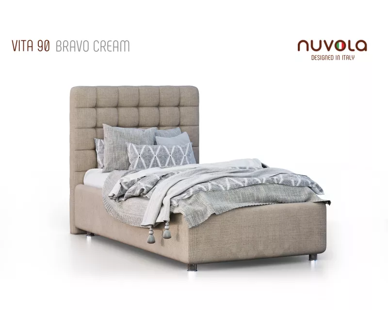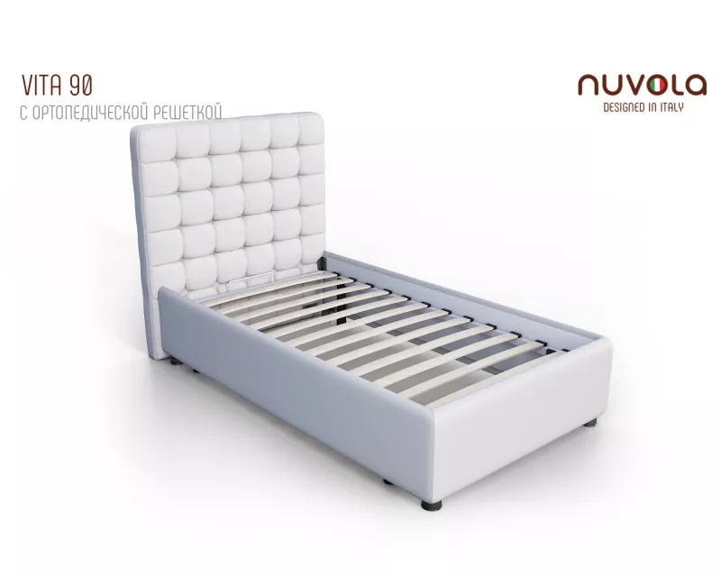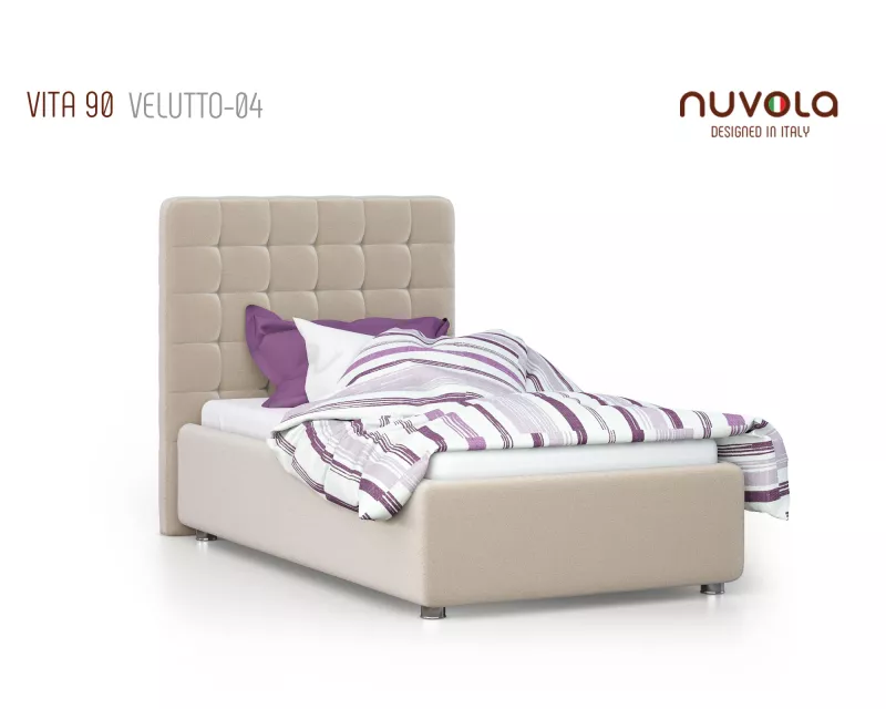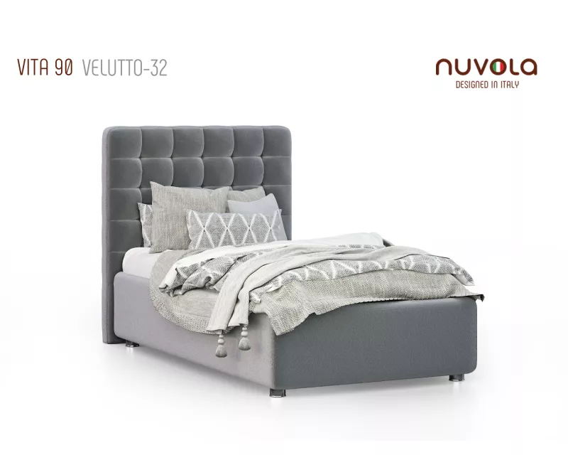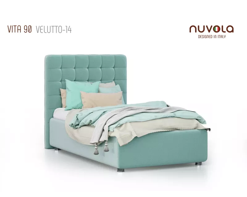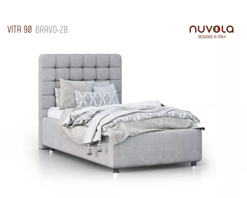 Односпальный вариант интерьерной кровати Vita с комфортным изголовьем.
