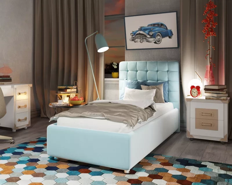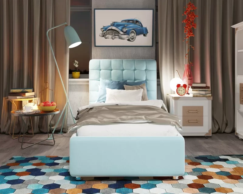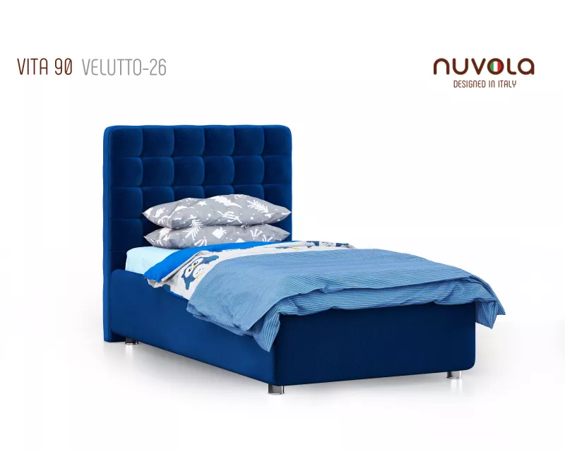 Односпальный вариант мягкой кровати Vita с высоким изголовьем для детей, подростков и взрослых.