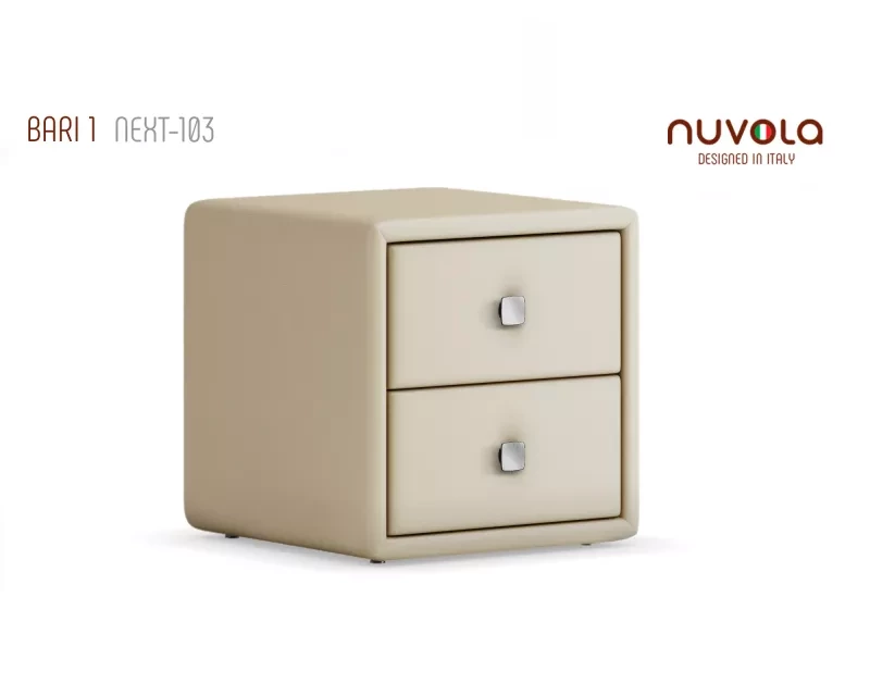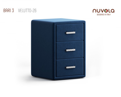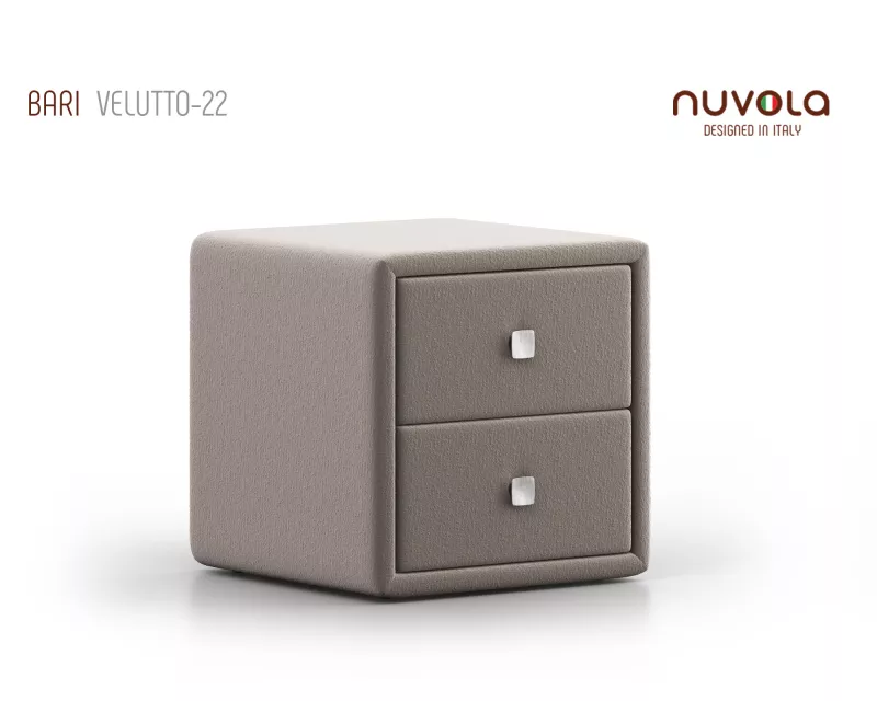 Мягкая прикроватная тумба Bari не только элемент декора, но и достаточно функциональный предмет мебели Вашей спальни: на ней, и в ней, мы будем хранить то, что пригодится нам перед сном и сразу после пробуждения - косметика, наручные часы, очки, телефон, наушники, книга и много другое. Нижний ящик тумбы более глубокий.